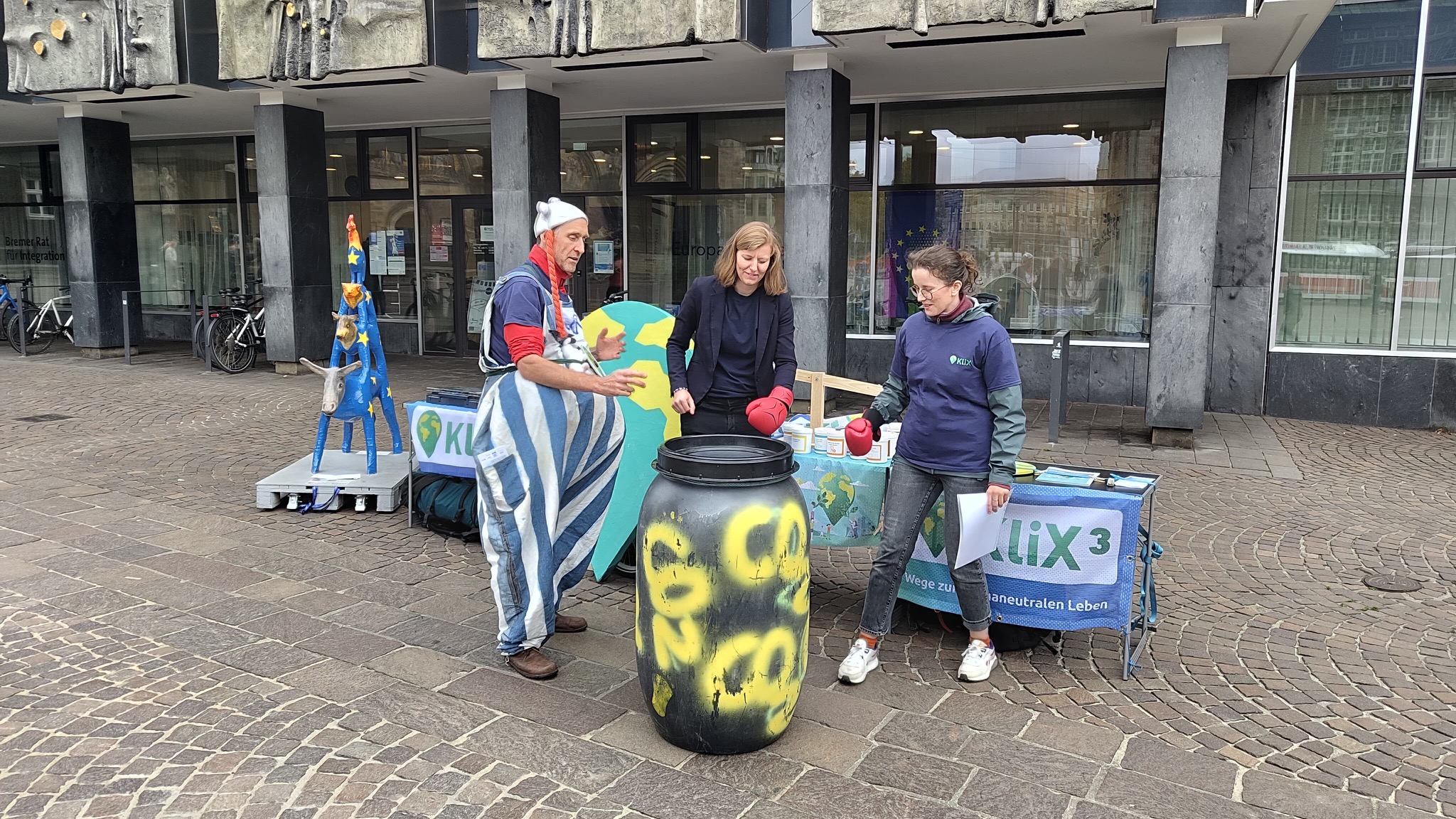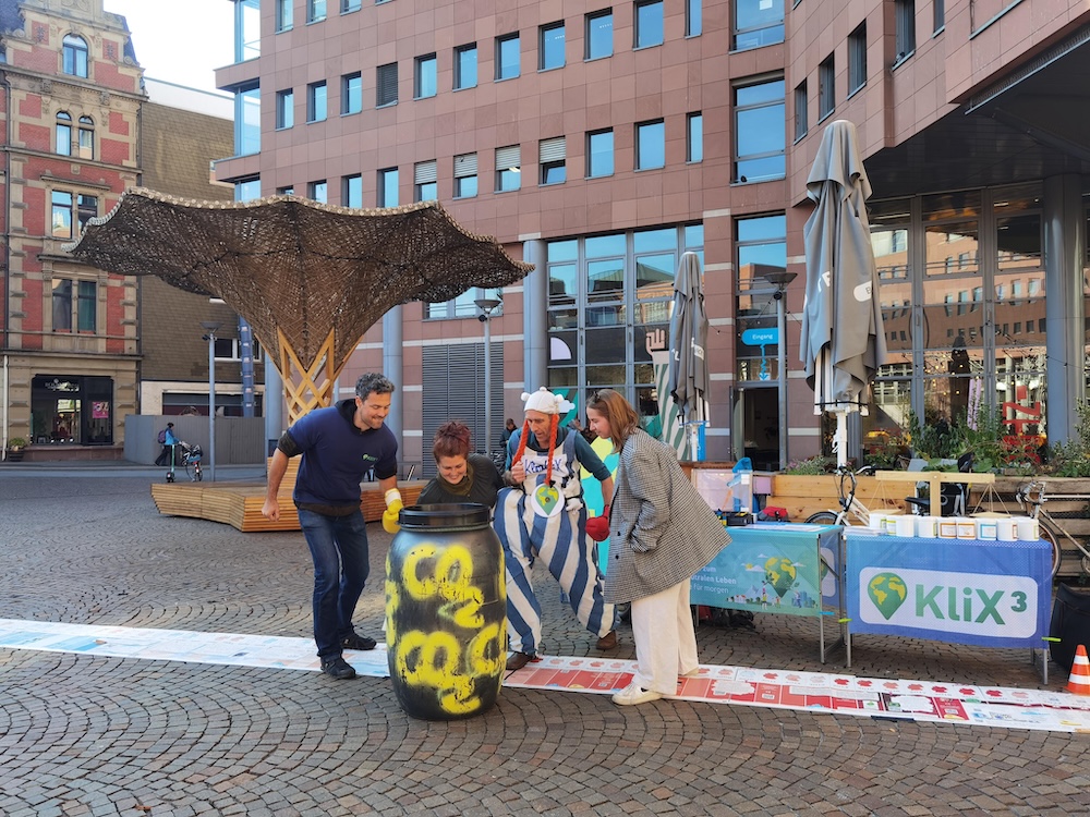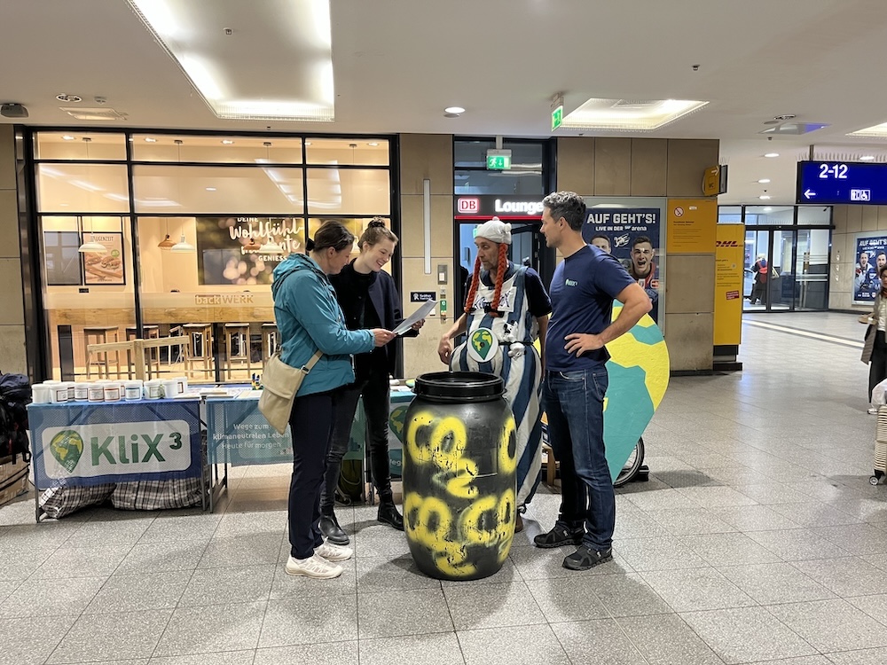 30 Tage, 30 Städte, 27 Abendveranstaltungen, 30 Infostände, viele tolle Gespräche und engagierte Menschen – das KliX³-Team war im Herbst 2025 auf Tour und hat im ganzen Land spannende Eindrücke gesammelt. Mit dabei: Der besonders starke Klimaschützer KlimaKliX, eine reisende CO₂-Tonne mit Deutschlandticket und ein Konzept für wirklich wirksamen Klimaschutz. Wir teilen die schönsten Bilder und Erlebnisse mit Ihnen!
